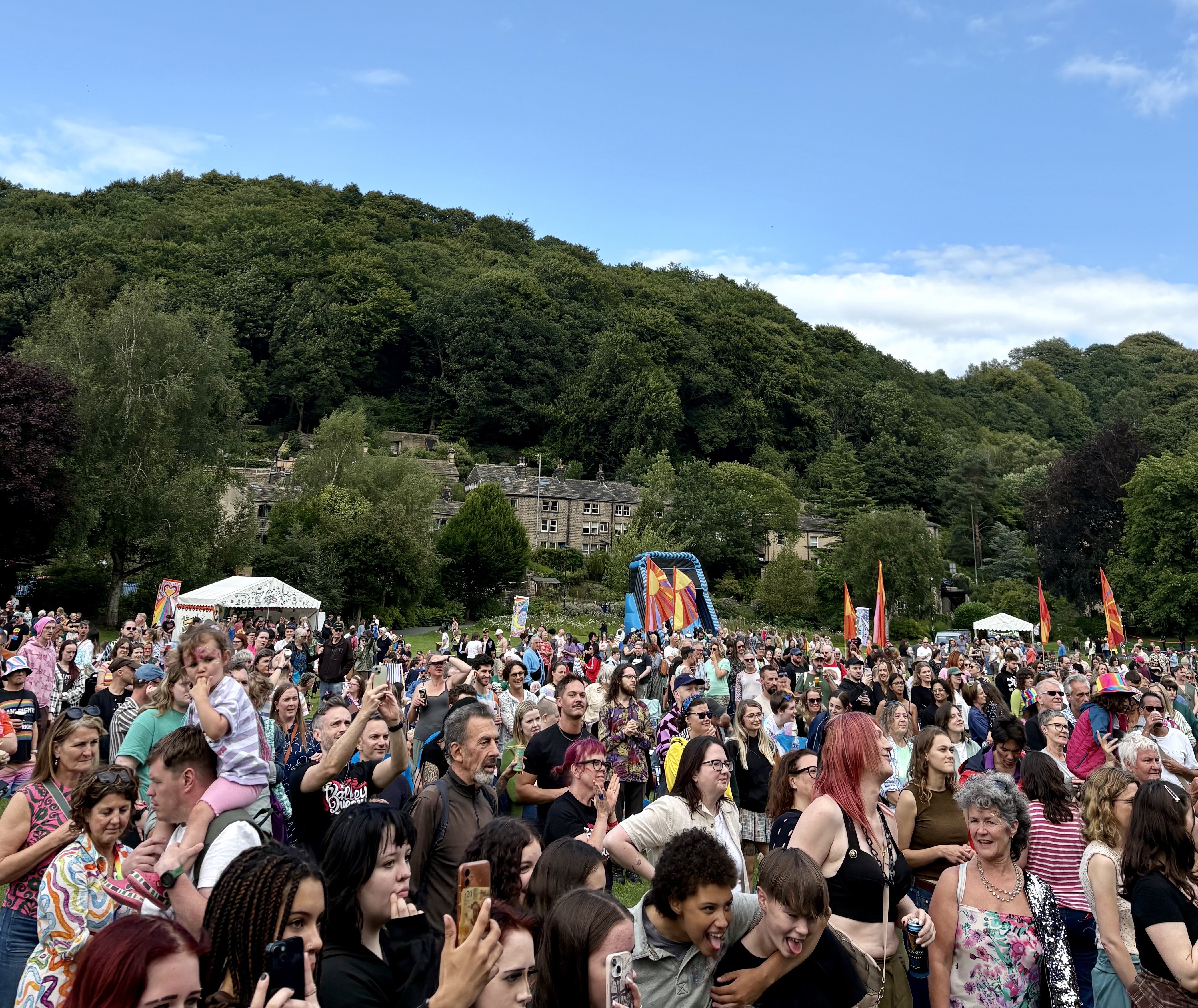 Happy Valley Pride is an award-winning, LGBTQIA+ led and community-driven arts charity. We bring together a wide range of ages, sexualities, genders, ethnicities and abilities in a creative celebration of equality & diversity, platforming more than eighty artists and reaching over thirteen thousand people annually. Based in Hebden Bridge we serve not only the LGBTQIA+ communities and allies in the valley of Calderdale, but also visitors from across the UK and beyond.